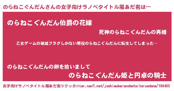 | 欧米人風あだ名 | 『ダレノガレのらねこぐんだん』 |