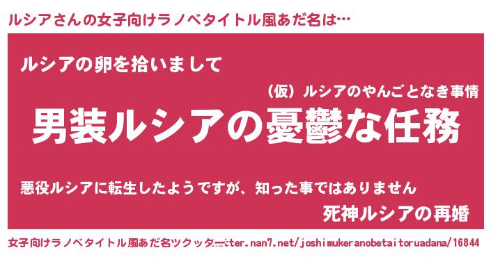 | 胡散臭い通販商品みたいなあだ名 | 『伝統あるサプリメント…その名も「ルシア」』 |