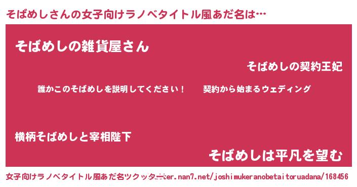 | 男性向けラノベタイトル風あだ名 | 『ソバメシアートオンライン』 |
