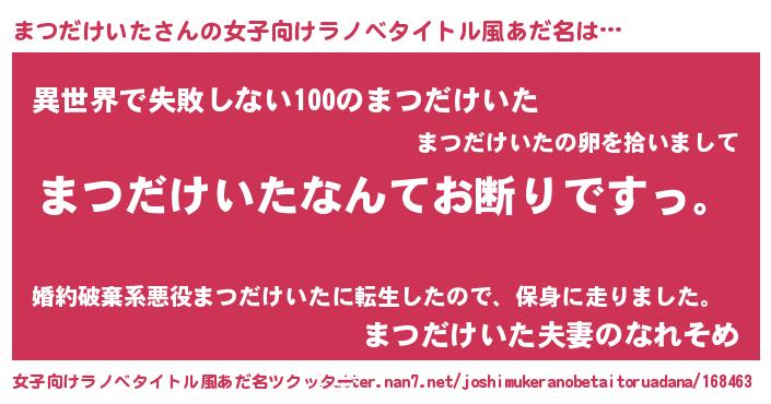 | 意味不明あだ名 | 『自称まつだけいた』 |