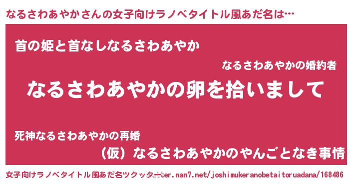 | 意味不明あだ名 | 『とにかく怪しいなるさわあやか』 |