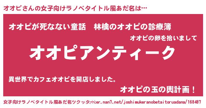 | 男性向けラノベタイトル風あだ名 | 『魔法科高校のオオピ』 |