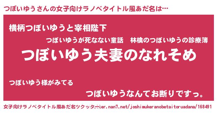 | 胡散臭い通販商品みたいなあだ名 | 『100人中100人が認めたイリジウム磁石…その名も「つぼいゆう」』 |