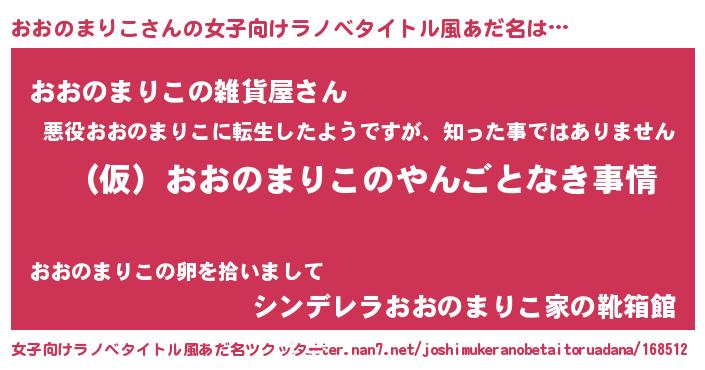 | 胡散臭い通販商品みたいなあだ名 | 『必ず成功する霊験あらたかなお札…その名も「おおのまりこ」』 |