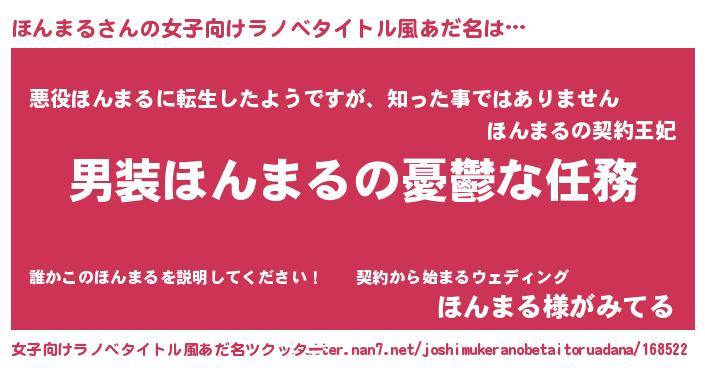 | 男性向けラノベタイトル風あだ名 | 『うちのほんまるが世界を掌握している!』 |