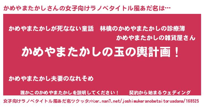 | 男性向けラノベタイトル風あだ名 | 『かめやまたかし~年齢イコール彼女いない歴の魔法使い~』 |