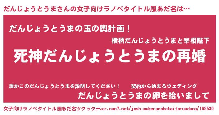 | 男性向けラノベタイトル風あだ名 | 『ノーゲーム・ノーダンジョウトウマ』 |