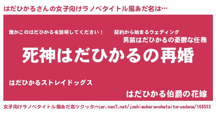 | 男性向けラノベタイトル風あだ名 | 『ノーゲーム・ノーハダヒカル』 |