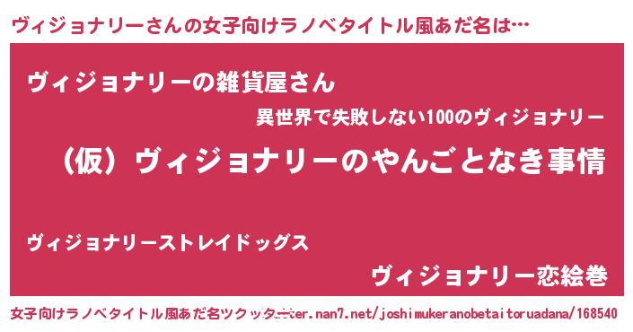 | 男性向けラノベタイトル風あだ名 | 『ヴィジョナリーの憂鬱』 |