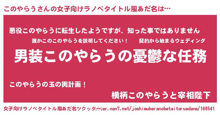 | 意味不明あだ名 | 『住所不定無職このやらう(7歳)』 |