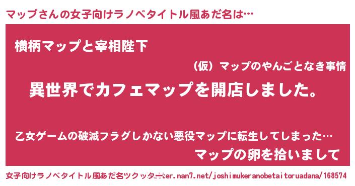 | 男性向けラノベタイトル風あだ名 | 『誰もが恐れるあのマップが、ぼくの専属メイドになるようです。』 |