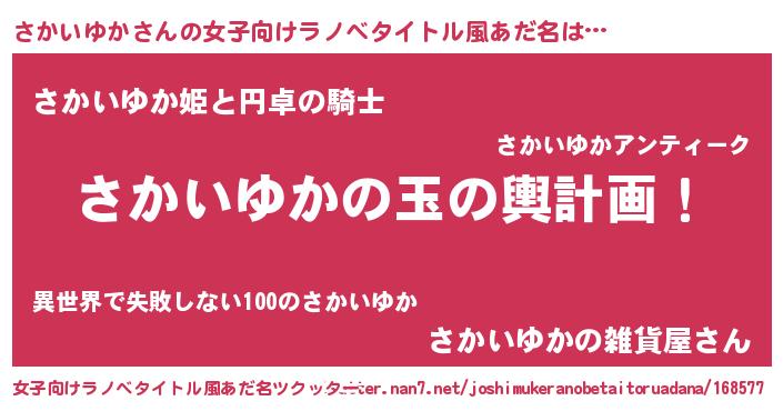 | 胡散臭い通販商品みたいなあだ名 | 『モテモテ間違いなしブレスレット…その名も「さかいゆか」』 |