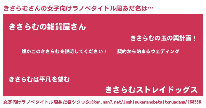 | 胡散臭い通販商品みたいなあだ名 | 『億万長者になれるブレスレット…その名も「きさらむ」』 |