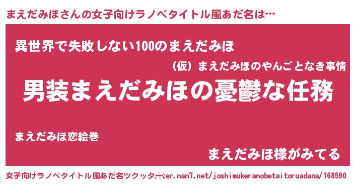 | 男性向けラノベタイトル風あだ名 | 『うちのまえだみほが世界を掌握している!』 |