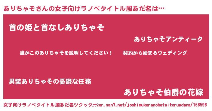 | ファンタジー風あだ名 | 『アリフェル』『エターナルアリチャソー』 |