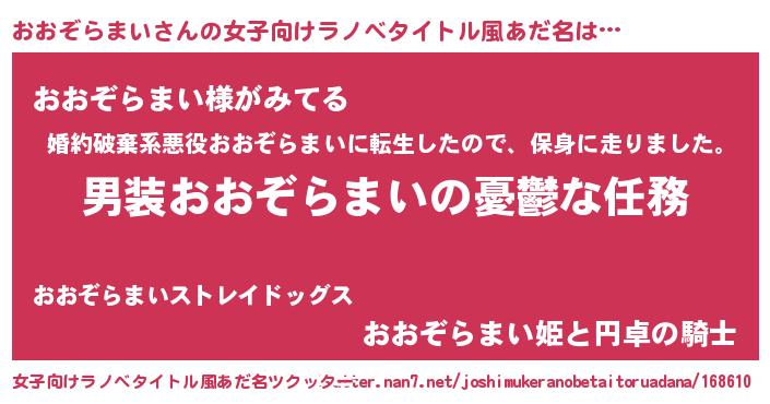 | 男性向けラノベタイトル風あだ名 | 『うちのおおぞらまいが世界を掌握している!』 |