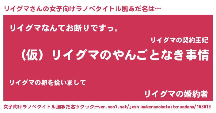 | 男性向けラノベタイトル風あだ名 | 『リイグマの憂鬱』 |