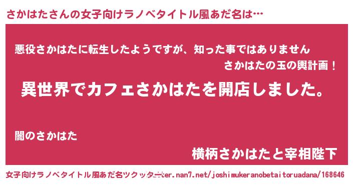 | 男性向けラノベタイトル風あだ名 | 『誰もが恐れるあのさかはたが、ぼくの専属メイドになるようです。』 |