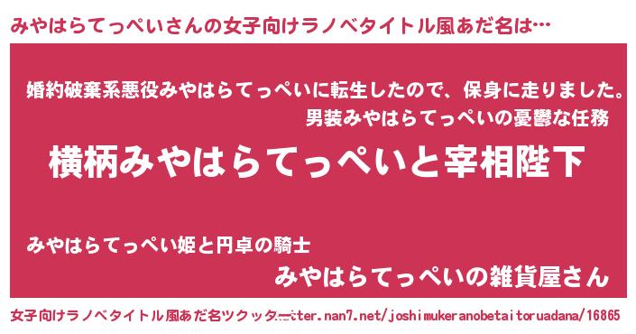 | 男性向けラノベタイトル風あだ名 | 『みやはらてっぺいに滅ぼされるだけの簡単なお仕事です』 |