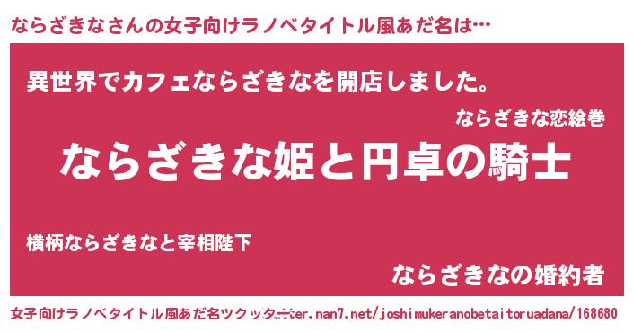 | 男性向けラノベタイトル風あだ名 | 『ならざきなの憂鬱』 |