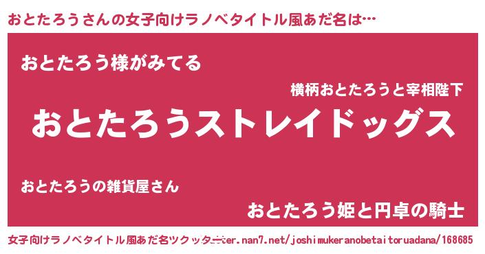 | 男性向けラノベタイトル風あだ名 | 『Re:おとたろうから始める異世界生活』 |