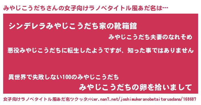 | 男性向けラノベタイトル風あだ名 | 『この素晴らしい世界にみやじこうだちを!』 |