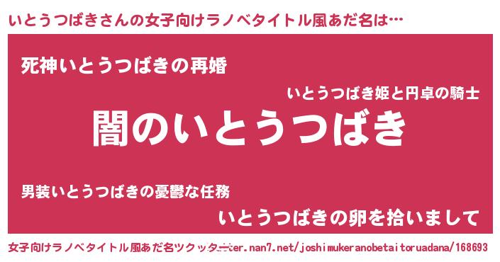 | 男性向けラノベタイトル風あだ名 | 『Re:いとうつばきから始める異世界生活』 |