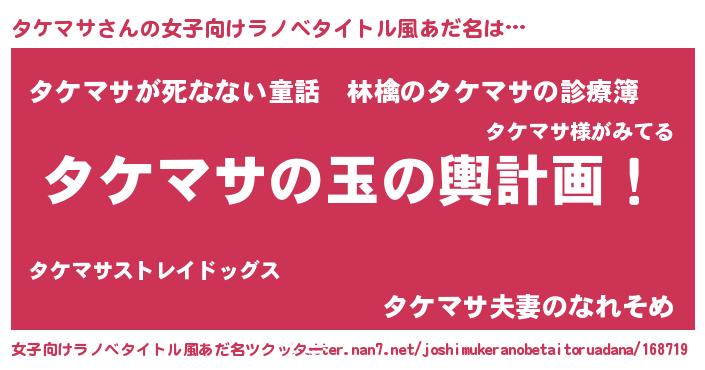 | ヘコむあだ名 | 『タケを』『タケっふぃ~』 |