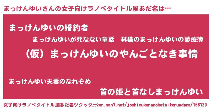 | 胡散臭い通販商品みたいなあだ名 | 『必ず成功するブレスレット…その名も「まっけんゆい」』 |
