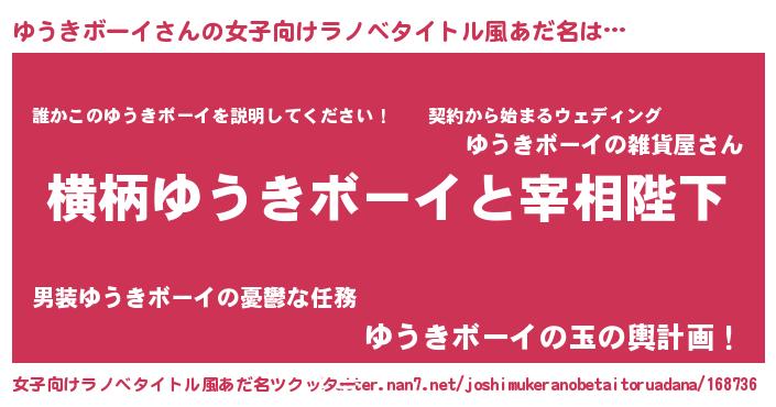 | 男性向けラノベタイトル風あだ名 | 『ゆうきボーイに滅ぼされるだけの簡単なお仕事です』 |
