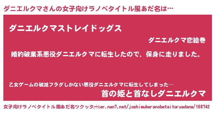 | 肩書あだ名 | 『ダニエルクマ中将』『ダニエルクマ総統』 |