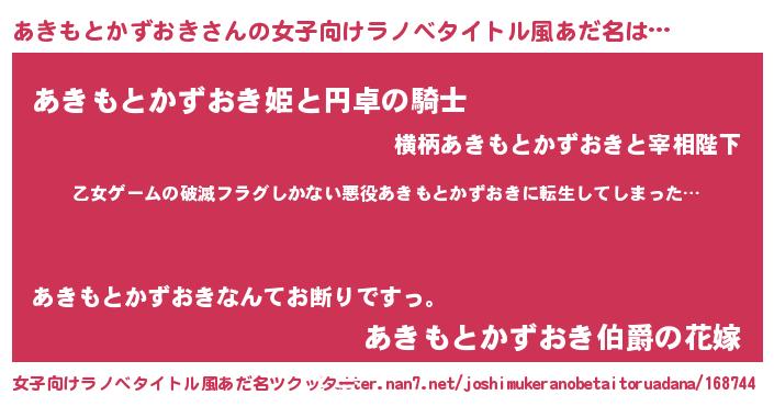 | 男性向けラノベタイトル風あだ名 | 『魔弾の王とあきもとかずおき』 |