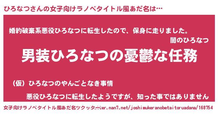 | 胡散臭い通販商品みたいなあだ名 | 『あなたにだけ特別に提供する100年もののヴィンテージワイン…その名も「ひろなつ」』 |