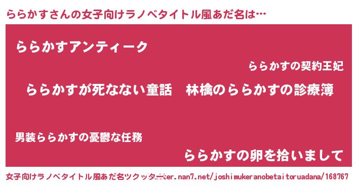 | 胡散臭い通販商品みたいなあだ名 | 『ハリウッド女優が絶賛した100年もののヴィンテージワイン…その名も「ららかす」』 |