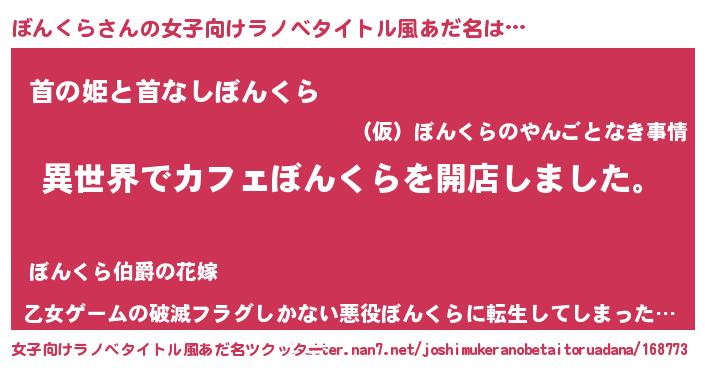 | 意味不明あだ名 | 『永久保存ぼんくら』『ペロリンぼんくら』 |