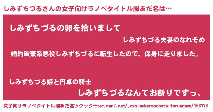 | 胡散臭い通販商品みたいなあだ名 | 『信頼と実績のネックレス…その名も「しみずちづる」』 |