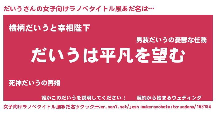 | 男性向けラノベタイトル風あだ名 | 『ダンジョンにだいうを求めるのは間違っているだろうか』 |