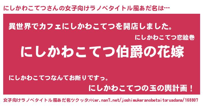 | 意味不明あだ名 | 『にしかわこてつフォーエバー』 |