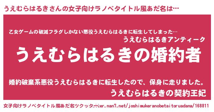 | 胡散臭い通販商品みたいなあだ名 | 『運命の人と巡り会える高級そうな絵画…その名も「うえむらはるき」』 |