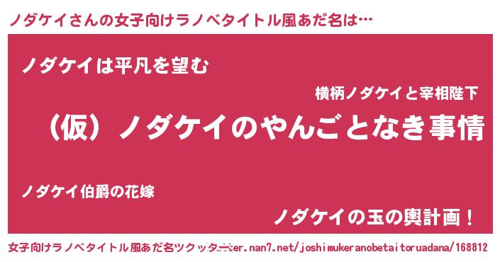 | 男性向けラノベタイトル風あだ名 | 『ノダケイの憂鬱』 |