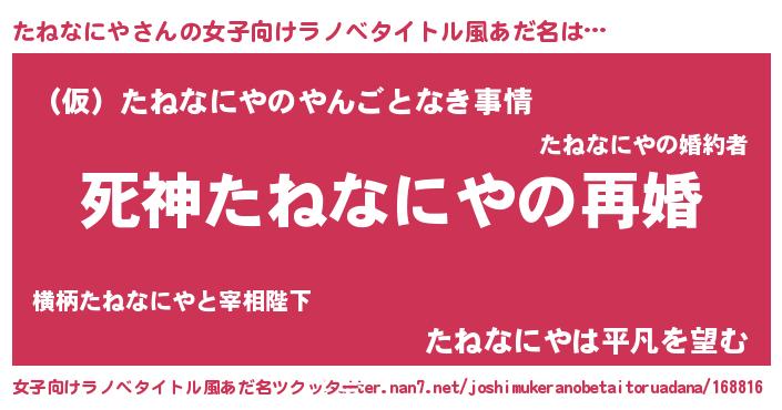 | 肩書あだ名 | 『たねなにや助教授』『たねなにや御曹司』 |
