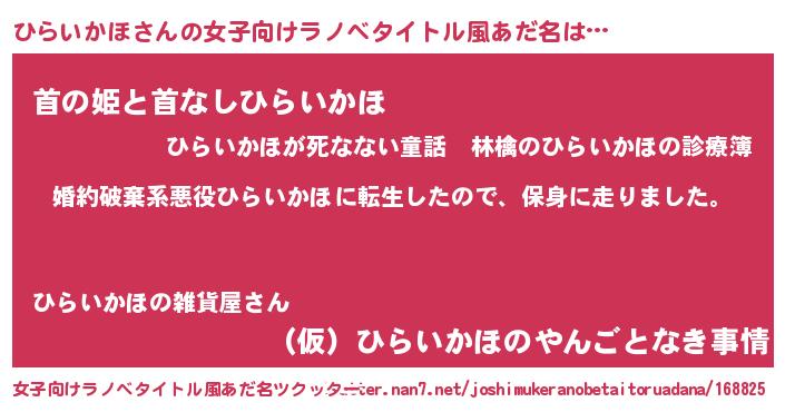 | 男性向けラノベタイトル風あだ名 | 『転生したらひらいかほだった件』 |