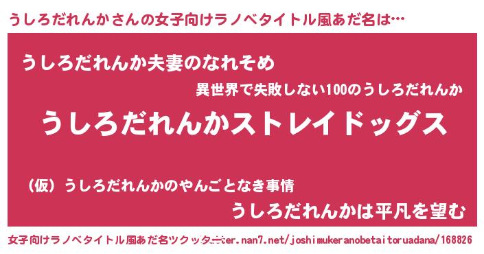 | 意味不明あだ名 | 『自称うしろだれんか』 |