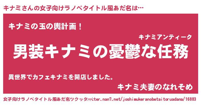 | 男性向けラノベタイトル風あだ名 | 『冴えないキナミの育てかた』 |