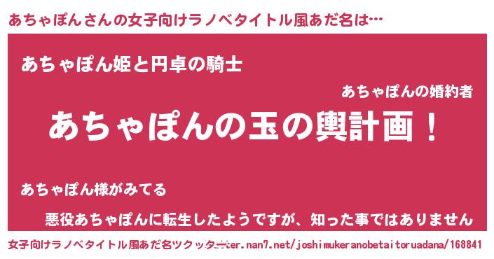 | 胡散臭い通販商品みたいなあだ名 | 『億万長者になれる水晶球…その名も「あちゃぽん」』 |