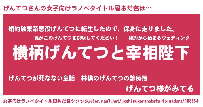 | 男性向けラノベタイトル風あだ名 | 『げんてつに滅ぼされるだけの簡単なお仕事です』 |