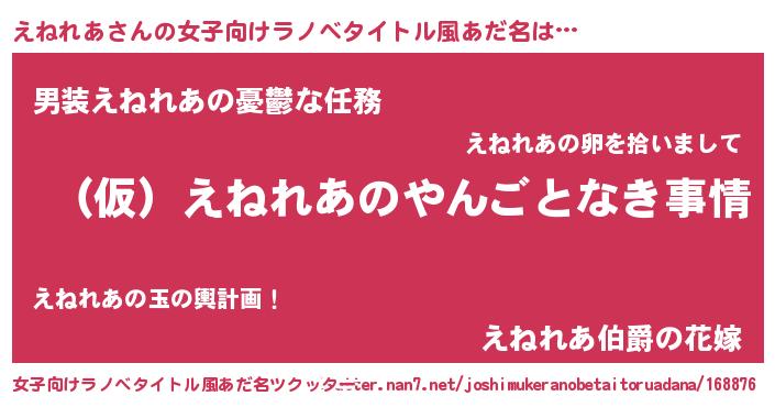 | 意味不明あだ名 | 『ペロリンえねれあ』『自称えねれあ』 |
