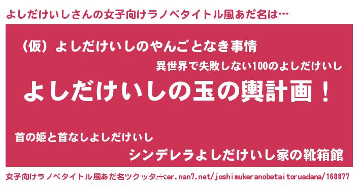 | 男性向けラノベタイトル風あだ名 | 『転生したらよしだけいしだった件』 |
