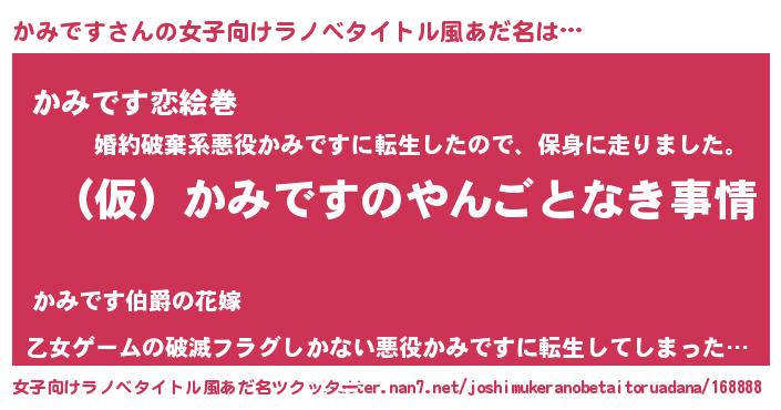 | 胡散臭い通販商品みたいなあだ名 | 『必ず成功する水晶球…その名も「かみです」』 |