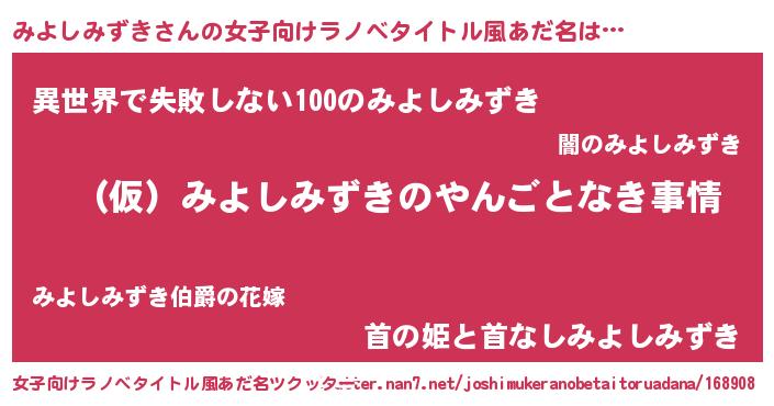 | 胡散臭い通販商品みたいなあだ名 | 『必ず成功するブレスレット…その名も「みよしみずき」』 |